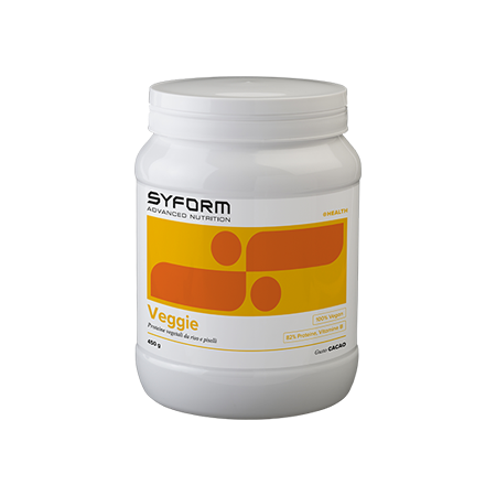 Veggie è un integratore alimentare in polvere a base di proteine vegetali provenienti da riso e pisello, con aggiunta di Vitamine del gruppo B che contribuiscono al normale metabolismo energetico e proteico; tra esse anche la B12, normalmente carente nei soggetti vegetariani. La nuova formula ha permesso di raggiungere un titolo proteico del 82% grazie all’impiego di proteine di riso altamente purificate e solubili.